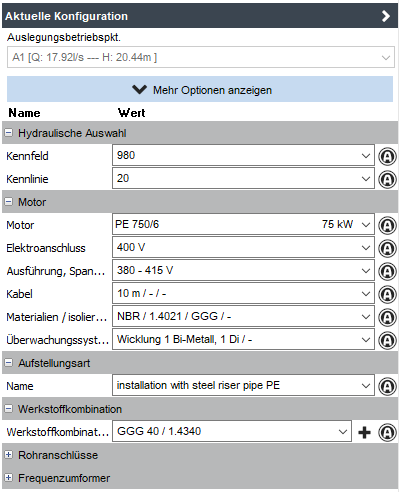 << Zum Anzeigen des Inhaltsverzeichnisses anklicken >> Navigation: Dialoge der Auswahl > Pumpenergebnisdialog - Darstellungsbereich > Pumpenkennlinien > Aktuelle Konfiguration |