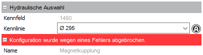 Konfigurierbare Komponenten werden in einem Kombinationsfeld angezeigt. In diesen Feldern können die Listen der verfügbaren Komponenten mit dem Schalter geöffnet werden. Zusätzlich wird hinter diesen Feldern ein Symbol angezeigt, welches den Status der derzeit ausgewählten Komponente angibt.